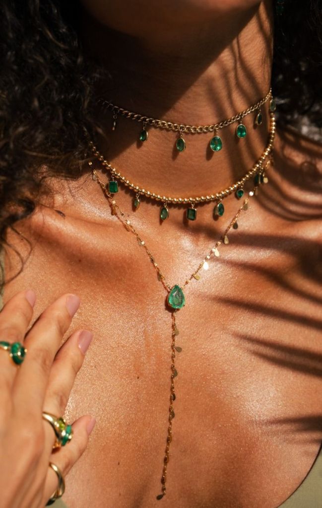 Las tendencias actuales muestran un creciente interés por las esmeraldas en diseños contemporáneos y minimalistas, combinadas con oro amarillo, rosa o blanco. También se han popularizado anillos de compromiso y collares donde la esmeralda es protagonista, a menudo acompañada por pequeños diamantes que resaltan su color verde intenso. Este enfoque combina tradición y modernidad, adaptando la esmeralda a los gustos actuales.